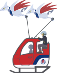 Un taxi volador aparece por primera vez en la saga Espada y Escudo del manga Pocket Monsters Special, en PMSSwSh06, cuando Milo lo solicita para que lo lleve a su estadio.