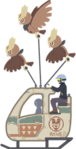 - En Paldea, debido a la presencia de Tinkaton, se emplean múltiples Squawkabilly atados con cuerdas a la cabina, generalmente cuatro, uno de cada forma.
