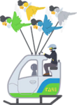Los taxis voladores se tratan de cabinas llevadas por Pokémon y pilotados por un aerotaxista. Según la región, los Pokémon usados para llevar la cabina varían: