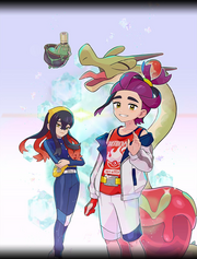Artwork de varios entrenadores en Pokémon Masters.png 800 × 567; 904 kB