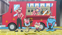 Mientras en la ciudad, el Equipo/Team Rocket se encuentra vendiendo malasadas pero sin ningún cliente hasta que Rowlet es atraído por el aroma de las malasadas pero el Mimikyu de Jessie lo espanta con mazazo, luego Rowlet logra ver a Pikachu junto a Poipole, éste cree que lo está atacando y se dirige rápidamente hacia allá, esto provoca que Poipole se asuste y en un acto de desesperación lo rocía con tóxico, cayendo envenenado. Pikachu se molesta por eso pero Poipole triste trata de decirle que no fue su intención y le pide su ayuda para curarlo; en eso el Equipo Rocket se percata de la presencia de Pikachu, pero su atención se fija más en Poipole y deciden ir a capturarlo.