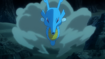 - Seadra (salvaje): Aparece en el submarino hundido, sale huyendo por el grito de Goh al verlo. Después de ser salvado de un Sharpedo que lo perseguía, ayuda a Ash y Goh a localizar a Kingdra.