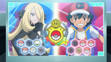 - Comienza el combate entre Cynthia/Cintia y Ash por las semifinales del Torneo de los Ocho Maestros.