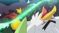 Sirfetch’d de Ash usando asalto estelar.) - Disparo escamas/Ráfaga escamas (usado por la Garchomp de Cynthia/Garchomp de Cintia) • (ver imagen