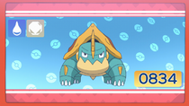 | HA | Drednaw, el Pokémon mordisco. Es de tipo agua y roca. Un Pokémon bastante agresivo, acecha cerca de la orilla y muerde a cualquier Pokémon que se acerque a tomar agua cerca de él. | ||
