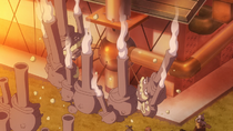 En el Valiente Olivino, Oria reprende a Rod por haber roto una pared después de practicar lanzando Pokébolas/Poké Balls, mencionando que en las paredes hay cables que hacen que el dirigible funcione. Justo en ese momento, Friede y Capi la llaman para que vaya al puente por un fallo en un aparato del dirigible, Murdock le avisa que el refrigerador no funciona, Mollie la llama porque el ascensor se atascó e incluso Doti le pide ayuda. Mientras, se acercan a lo que parece ser una fábrica de Pokébolas/fábrica de Poké Balls.