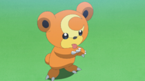 | HA | Teddiursa. El Pokémon osito. Tipo normal. Sus pequeñas garras están impregnadas con miel natural. Cuando está nervioso, suele lamerse sus garras para así alegrarse. | ||