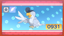 | ES | Kilowattrel, Pokémon fregata. Es de tipo eléctrico y volador. Infla su saco para amplificar su electricidad. Remontando el viento, este Pokémon puede volar más de 700 kilómetros en un día. | ||