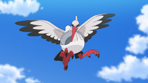 | HA | Bombirdier, el Pokémon arrojador. Tipo volador y siniestro. Bombirdier usa el delantal en su pecho para llevar comida a su nido. Disfruta arrojando cosas que hacen mucho ruido. | ||