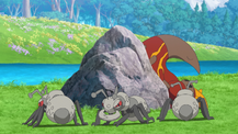 - Los entrenadores y Pokémon elegidos en los eyecatchers de Japón son Rod y Crocalor (ver imagen