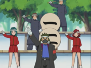 En ese momento el Equipo Rocket/Team Rocket disfrazado pide al jefe de los animadores unirse a ellos y el acepta, al rato una estudiante le piden a nuestros héroes que como unos nuevos estudiantes se han unido que si ellos pueden hacer una batalla de prueba y ellos aceptan. Ash y sus amigos pelearan contra el Equipo Rocket/Team Rocket disfrazado.