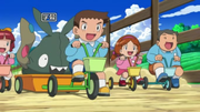 Ash, Cilan/Millo e Iris caminan tranquilamente por la ruta 3, cuando de repente aparecen unos niños acompañados de un Trubbish y los atacan con bolas de fango. Los niños llevan unos triciclos, y en un triciclo llevan a Trubbish, éste sin querer se lleva la gorra de Ash, que había caído al piso después del ataque con las bolas de fango. Los niños huyen, y aparecen su profesora, Daniela, y su abuela y encargada de la Guardería Pokémon, Karena/Karina.