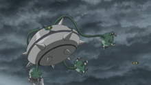 Mientras tanto en un valle rocoso, Zapdos persigue a un Ferrothorn mecánico que resulta ser del Equipo Rocket (anime)/Team Rocket (anime). Estos atacan a Zapdos con el fin de capturarlo pero nada les sale bien. Nuestros héroes sienten temblores dentro de la cueva lo que causa que caigan unas rocas provocando que Ash y sus Pokémon se separen del resto del grupo. Serena le dice a Ash que ellos llevarían a Stan al pueblo y mientras que Ash le lleve la medicina a la niña.