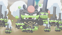 Weezing de Galar descansado en los exteriores de la fábrica.
