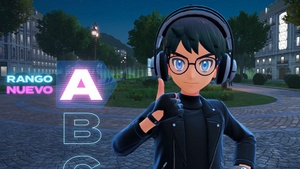 | Comenzando el combate de ascenso de rango B, contra Grisel. | Ascendiendo al rango A, tras derrotar a Grisel. |