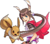 "Una joven en posesión de un talento poco común para comunicarse en un nivel profundo con Pokémon de todo tipo. La amistad de esta guerrera con Eevee se remonta a la infancia."