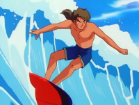 Es nombrado al principio del episodio por la Oficial Jenny/Agente Mara cuando explica el motivo de por que los surfistas clavan sus banderillas en el pico de piedra. Más tarde después de que Ash es salvado por Víctor, este le cuenta como lo conoció de niño y que fue su inspiración para ser surfista. Fue un surfista legendario conocido por su gran habilidad. Su mayor hazaña fue clavar una bandera en el pico de la roca durante la "Gran ola".