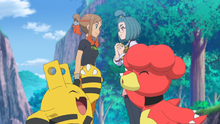 Cuando una de las máquinas explota, Oria le pregunta sobre si le da mantenimiento, pero esta al negarlo Oria decide ayudarla con eso haciendo que Karna/Carla la invite a quedarse. Cuando un grupo de Weezing de Galar ataca a Rod y Liko, Friede le pide a Oria y Karna/Carla que hagan que las maquinas exhalen mucho humo para poder distraerlos. Al hacerlo, Oria hace una modificación para que los Weezing consuman el humo de la máquina y le comenta que seguirá de viaje con sus amigos.