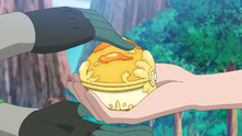 Algo antes del EP1335, Excedia/Progreso contrata los servicios de Karna/Carla para producir el exterior de las esferas fuertes, lo que le molesta, pues no le cuentan sobre el uso de los objetos, y no se trata de Pokébolas/Poké Balls. A pesar de esto, acepta el trabajo.