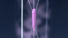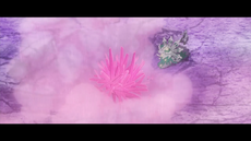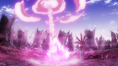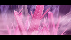 La roca afilada del Kleavor de los Seis Héroes adquiere el brillo rosado del laqualio/laquium y se vuelve más poderoso. |