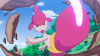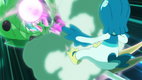 El chorro de agua/La pistola agua del Swanna de Dash se vuelve mucho más grande y poderoso; similar a una hidrobomba, y el agua cambia al color rosado del laqualio/laquium. |