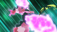 El veneno X del Drapion de Indi adquiere el brillo rosado del laqualio/laquium y se vuelve más fuerte. |