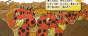 Estos dos Ledyba son algunos de los Pokémon que habitan en el bosque y se les ve participando en la Marcha Pokémon por el Festival de las bayas. |