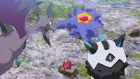 ↑ Llamado erróneamente como ¡Enfrentando el bien con los ojos bien abiertos! en TV Pokémon.