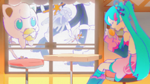 Hatsune Miku y su Jigglypuff aparecen comiendo malasadas en la canción After Epochs del Project VOLTAGE.