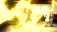 Pikachu utiliza ataque rápido para detenerlo, pero el doctor Zed lo derrota, en eso aparecen papá Zarude y los Pokémon de la selva para detener al doctor Zed. Pikachu decide apoyarlos y lo derrotan.
