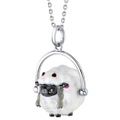 | Largo de la cadena: 24 pulgadas Materiales: Plata esterlina La cabeza y el cuerpo son dos piezas seperadas que se unen por un eslabón, lo que hace que parezca que se mueve la cabeza al caminar. | ||