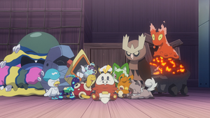 En Un empujoncillo de los amigos/Mientras esté con mis amigos ‹№›, Terapagos se une al grupo y en el ¡Un resbalón! ¡¿Y un Pokémon misterioso?!/¡Un resbalón! ¡¿Y un misterioso Pokémon?! ‹№› se comprueba que es bien aceptado participa en unas fiestas nocturnas con los demás Pokémon. En el mismo episodio los Pokémon del Valiente Olivino organizan fiestas clandestinas para divertirse entre todos, Capitán Pikachu presencia los actos. Polteageist tiene un enfrentamiento personal con Shuckle pero al final del capitulo Polteageist y Sinistea son aceptados al grupo.