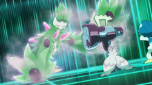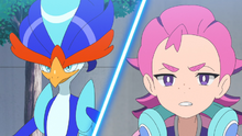 En ¡Llegando muy lejos!/Desde un lugar lejano ‹№›, se enfrenta al Rayquaza de Lucius junto con Capitán Pikachu y el Sprigatito de Liko, usan varias técnicas combinadas pero resultan ser ineficaces y son derrotados fácilmente. Ceruledge de Amethio los salva del ataque de Rayquaza.