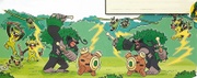 Artículo principal: Bastón El Thwackey de Victor evoluciona a Rillaboom durante un enfrentamiento contra unos Pokémon salvajes.