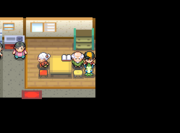 En el Centro Pokémon de la Aldea Marina. Un hombre de rojo enseña ascenso draco a Rayquaza.