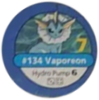 Si a Eevee se le expone a una piedra agua, evoluciona en Vaporeon. El cuerpo de Vaporeon es mayormente azul. Tiene unas orejas amarillas puntiagudas, cuando estas comienzan a vibrar es un indicador de que comenzará a llover en las próximas horas. Posee una aleta en la cabeza parecida a la de un pez vela, y una membrana de un estilo similar que rodea su cuello. Tiene una hilera de picos membranosos en la columna vertebral que se extienden a lo largo de su espalda.