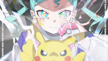 Ilustración de Hatsune Miku y Pikachu