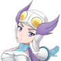 Su vestimenta es igual a la del videojuego, lleva un traje de color azul grisáceo y blanco, un casco con gafas similares a las de un aviador. Lleva el pelo largo de color violeta en una cola, y tiene también los ojos violetas.